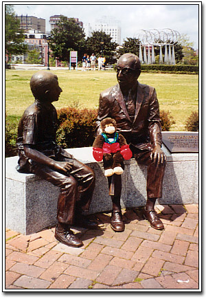 We went to the Aquarium of the Americas and I tried to start a fight with this spaceman-looking guy. He had on this tough suit, though, and I couldn't punch it hard enough to break it. Then he grabbed me with this big claw and wouldn't let go. He made me promise to stop picking fights before he let me go--and this was my last day in New Orleans! I guess I'll have to find a boxing match somewhere else. |
